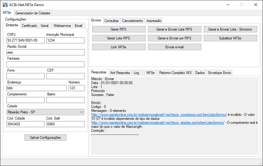 Tentei gerar um xml do provedor ISSNet e deu erro no codigo do serviço.