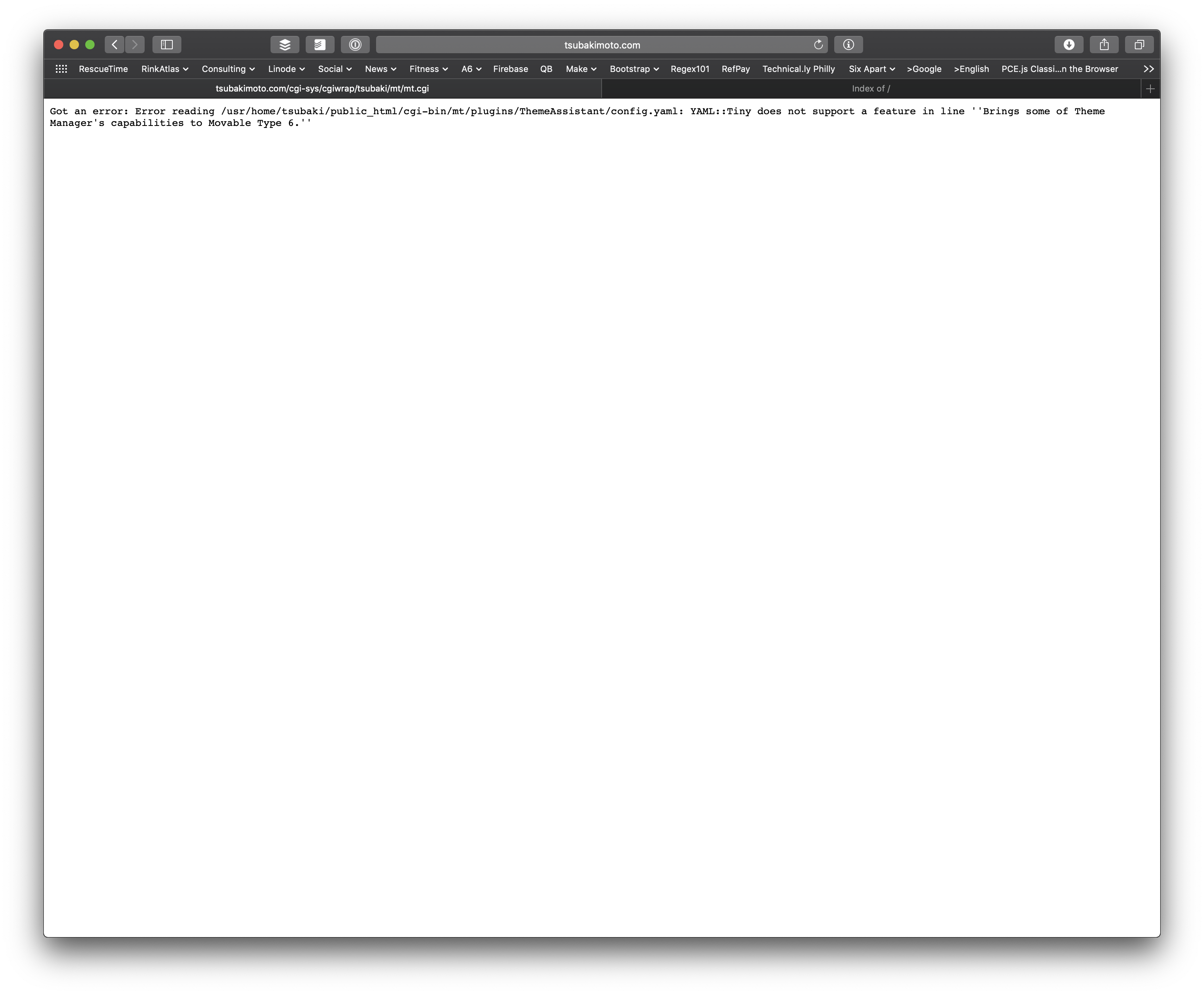 Got an error: Error reading /usr/home/tsubaki/public_html/cgi-bin/mt/plugins/ThemeAssistant/config.yaml: YAML::Tiny does not support a feature in line ‘ ‘Brings some of Theme Manager’s capabilities to Movable Type 6.’ ‘