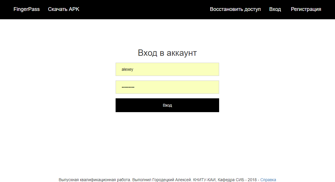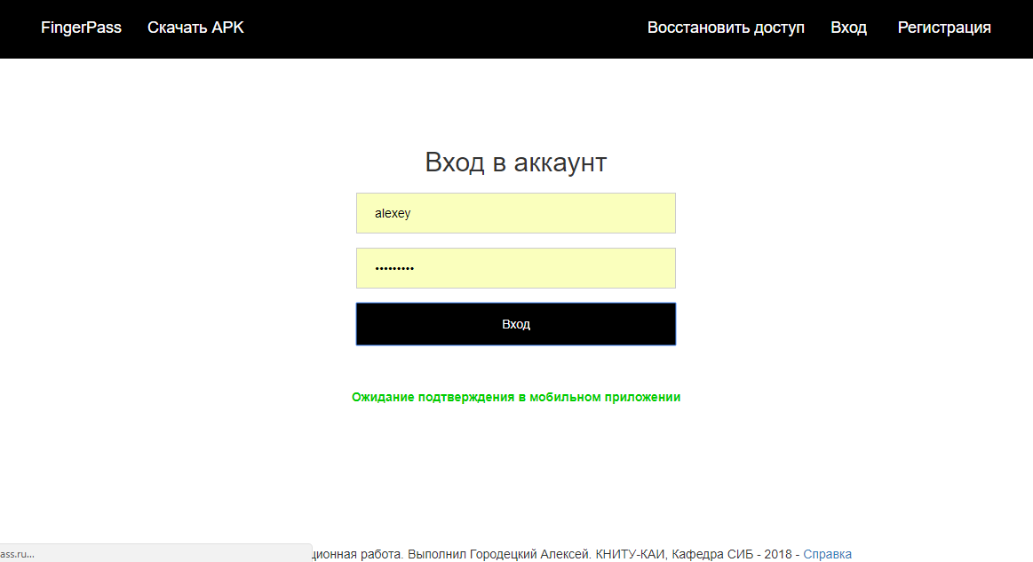 FingerPass Mobile App Graduation work for KNRTU-KAI. System for fingerprint authentication on web-resourses. Something like FIDO but using GOST as DSA algorithm. This is mobile application part written using Xamarin Framework. Mobile App: FrontEnd: