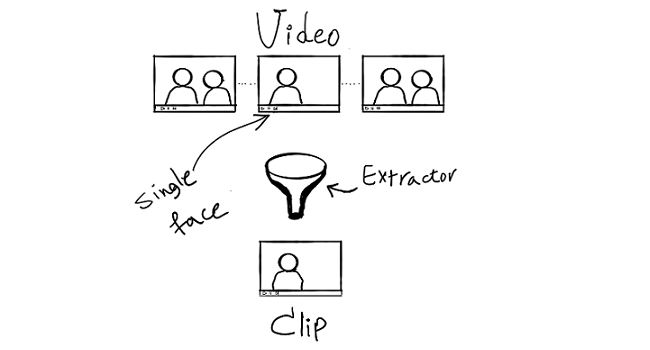 We get a video and load it with cv2, then we extract all of the frames in it, checking for face exsistion will happen for every fps/2 in the video (eg for a 30 fps video we check every 15 frames). we divide clips here, then we run Scene Detection to make sure that in every scene there is one identity. After science detection we initial dividing phase to divide clips into unique scenes.