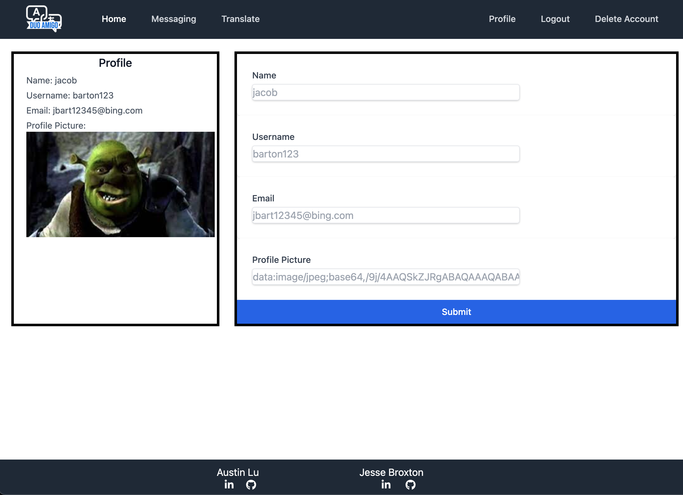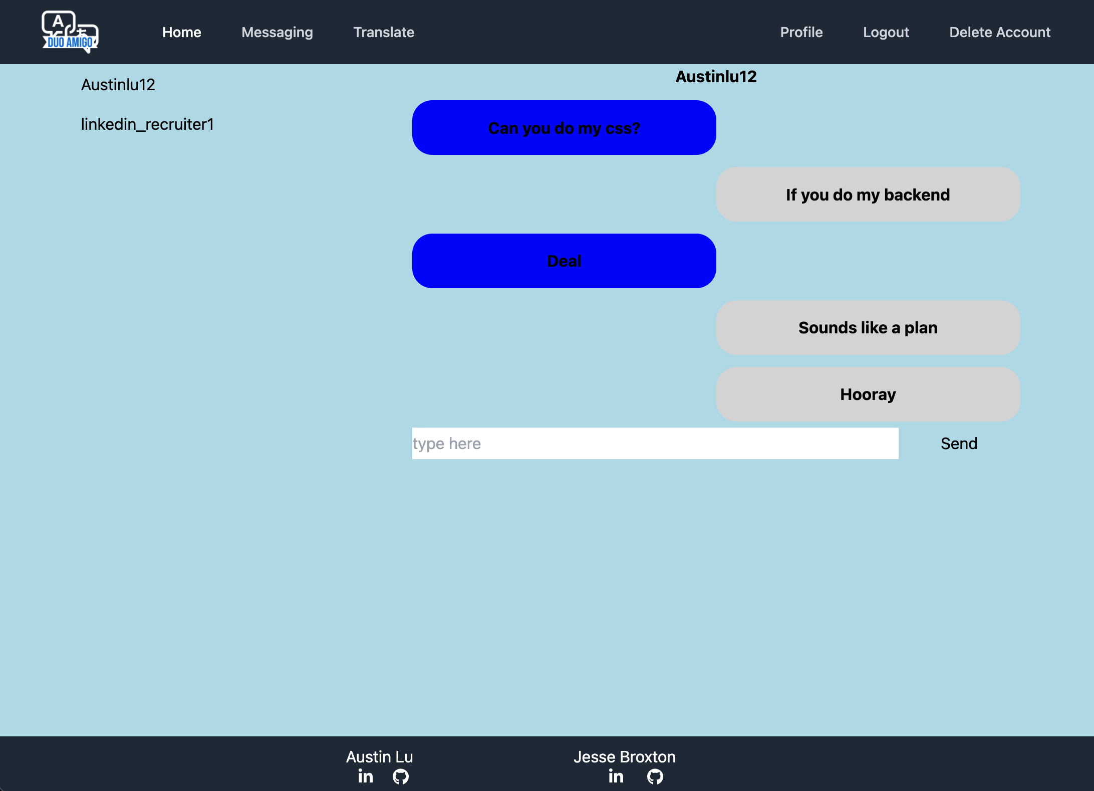 There are still some portions of this app that we aim to improve. We are still working to make the messaging fully functional, the ability for users to save translations, and making the app mobile friendly. Any contributions are greatly appreciated.