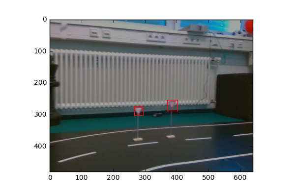 Depending on the background, there might be more candidates. Again, this only happens when facing this one direction. If a sign would've been in this image, it would be hard to detect, because we don't have enough CPU time to consider all candidates.
