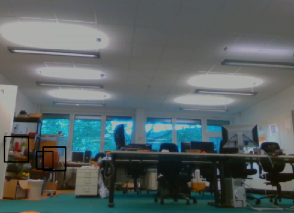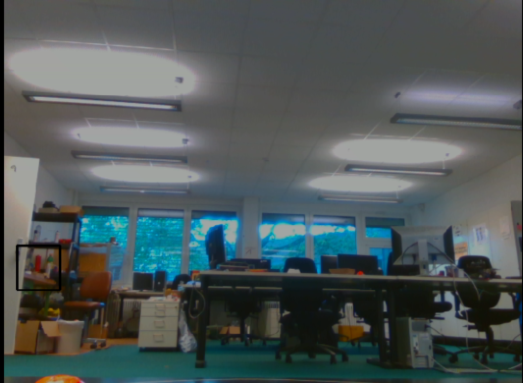 As mentioned earlier, when really wanting to confuse the model, it's possible to do this by heavily changing the lightning conditions. For this image, we turned the light off and closed the blinds. The room is now extremely dark, and we can't find the sign anymore. The candidate finding fails here.