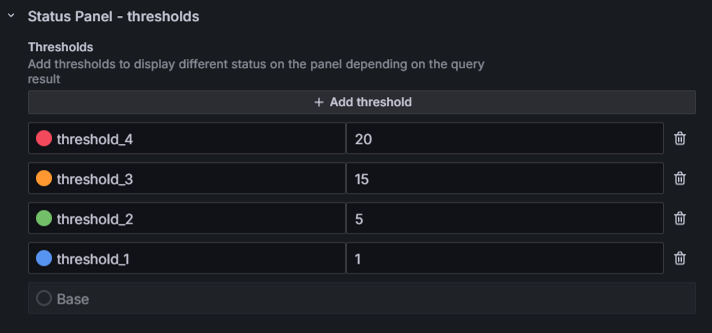 You can define thresholds to change the color and the severity depending on the query value by selected aggregation.