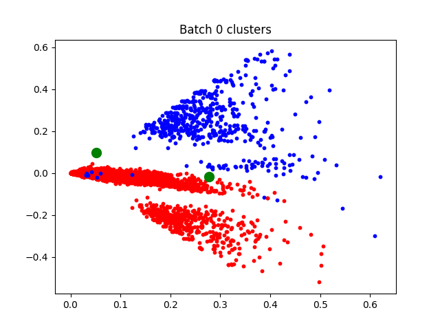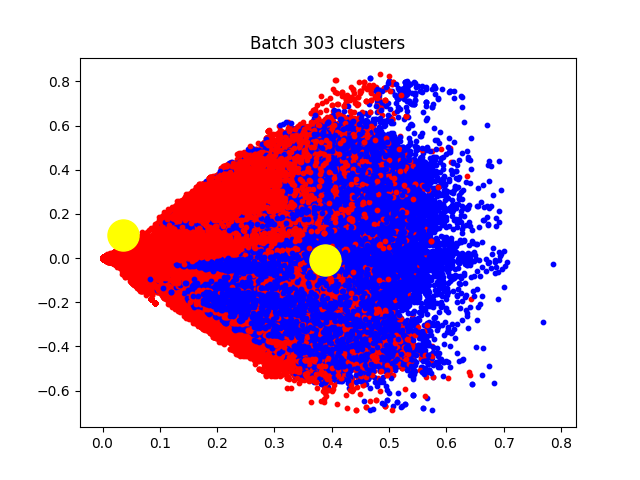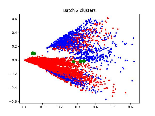 While considering KMeans plotting, we can see the trend of movement of centroids in the plane with the addition of each batch of data. At the end of the streaming, i.e. in the final batch, we can see that the points always cluster around the centroid for a given label.