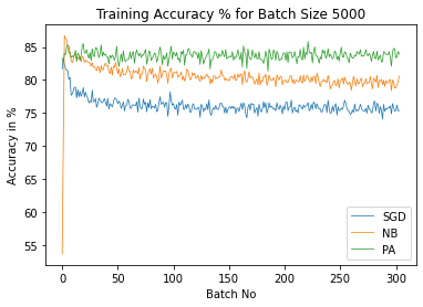 As seen in the above graph, the Passive Aggresive model performed the best in training. This trend was observed across other Training batch sizes as well.