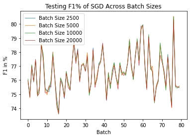 Models trained over various Batch Sizes were tested on the Test Set with a Batch Size of 1000 in order to get a standard accuracy unaffected by testing batch size. The only variable after this is done is the training batch size that the models were trained on.
