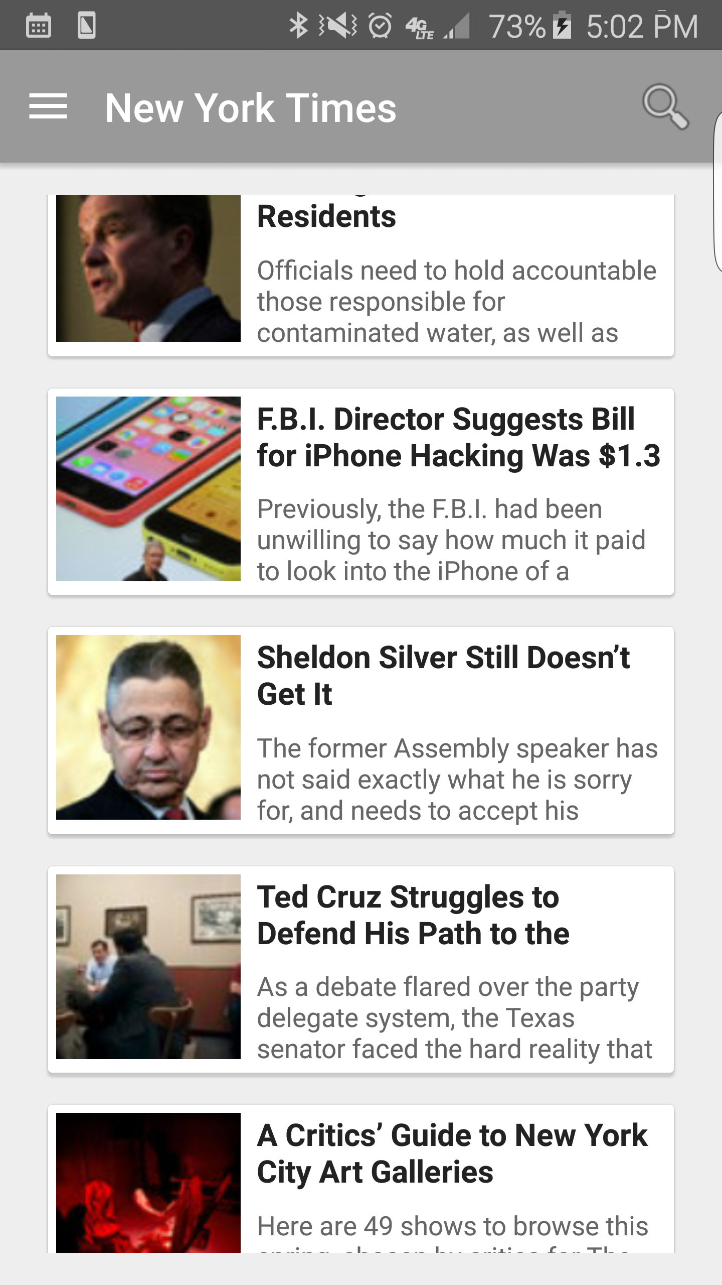 This app will provide the most recent Breaking News from the New York Times. The home screen shows the 10 most recent news stories from the NYT. Options to filter out by topic will also give the latest articles. The article list are fully clickable and will bring you to the web page showing the full article.