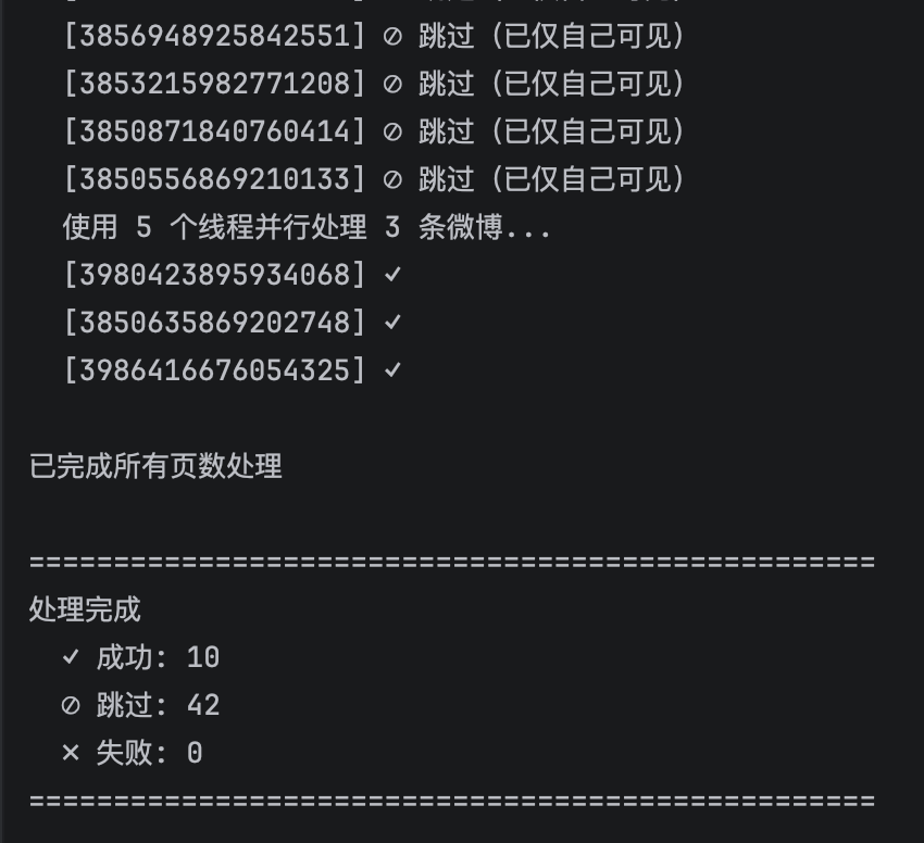 - 统计信息展示 - 显示总微博数、总页数和处理进度
