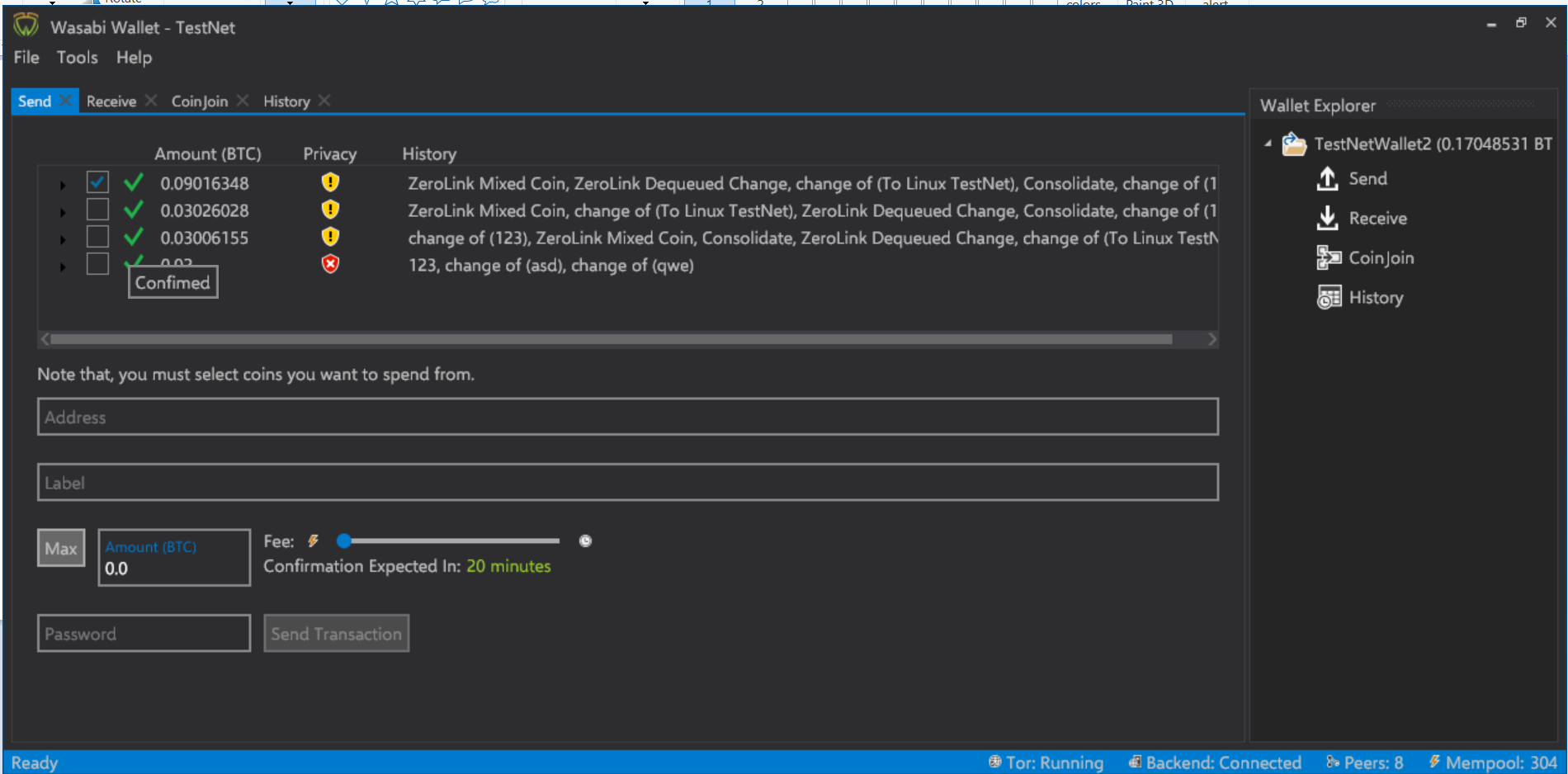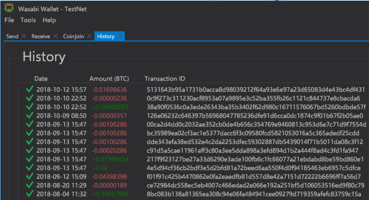 Wasabi also has a History tab like any other Bitcoin wallet.