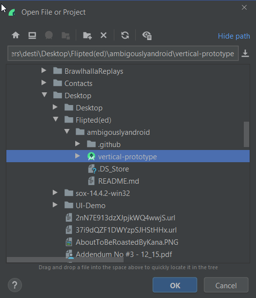 Be sure to select the green android project icon so that the IDE configures the project correctly.