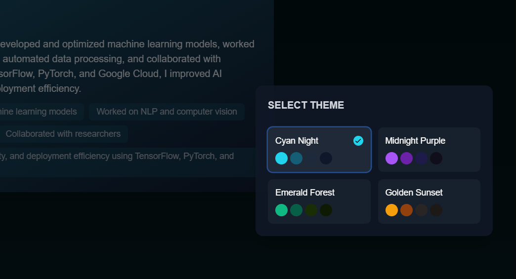 export default theme;You can also customize the portfolio layout, add new sections, or modify existing components to match your personal style.