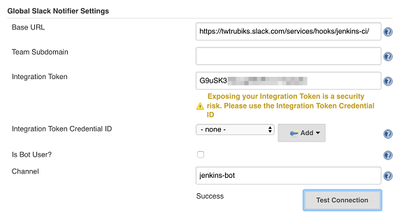 找到 Global Slack Notifier Settings,將 Base URL、Integration Token、Chnnel 貼上去,