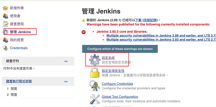 回到 Jenkins,左側管理 Jenkins,設定系統