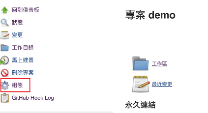 接著再回到 jenkins 專案裡的組態