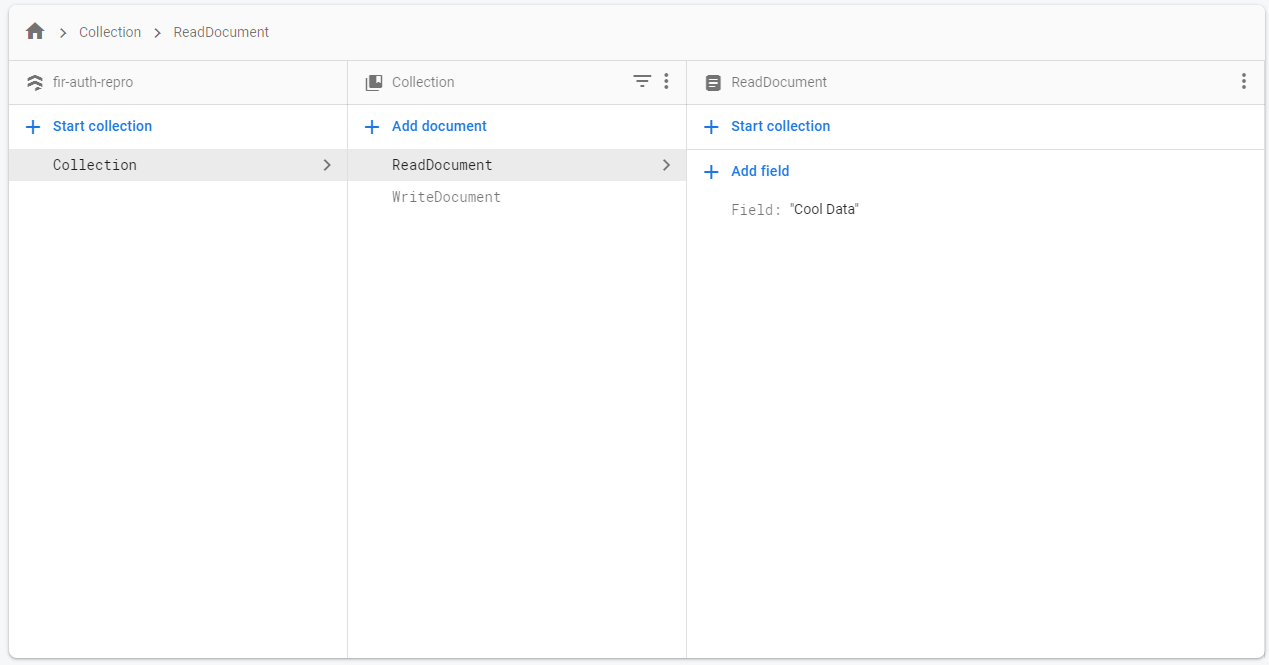ReproCanvas/FirestoreAreaand setup what data you want to read + write (Document Fields do not matter). Our Inspector + Our Database - Select the gameobject