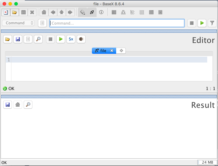 eXist is another open source XML database. The latest release is 3.4.0. If you are on a Mac, you can also install with Homebrew: brew cask install exist-db. When you run for eXist for the first time, you'll need to set configuration settings. We recommend that you accept the defaults for now. After eXist starts, navigate to eXide, its browser-based query executive engine.