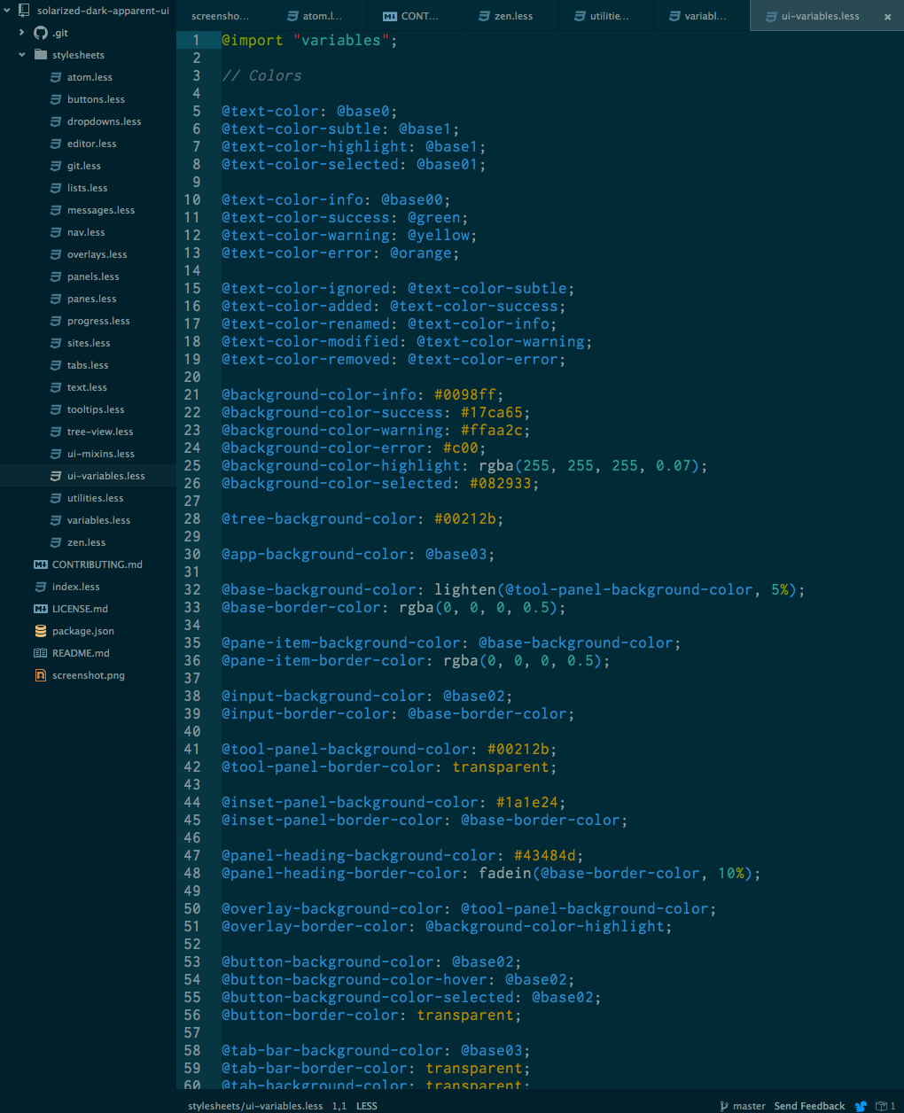 Based on Spacegray Dark UI and Solarized Dark UI Atom themes.