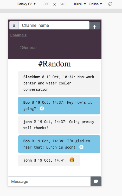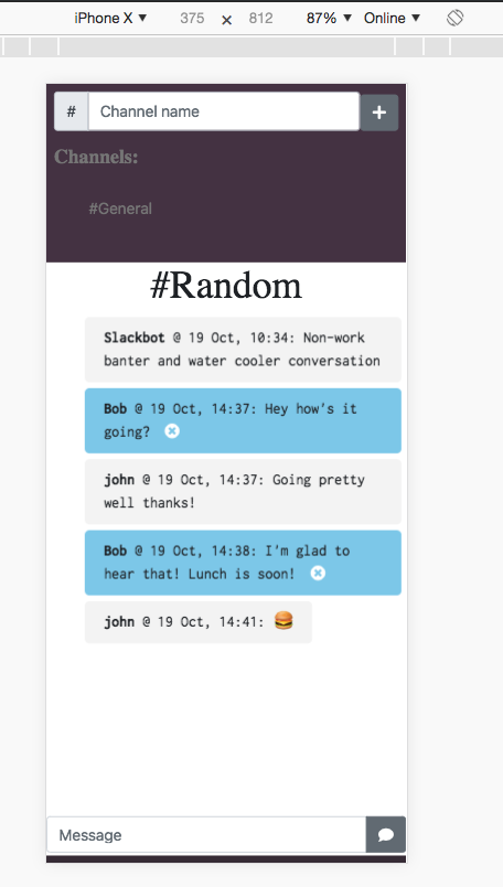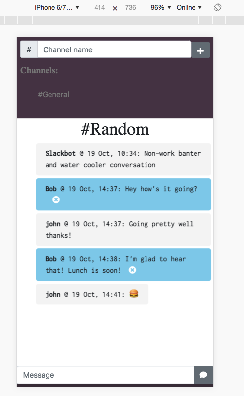 - If a user exits the application and reenters, it will enter the previous channel they were in and remembers the user (no need to recreate a new username)