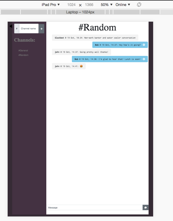 - This does not save the messages to a database because it doesn’t have one, all made using sessions and local storage
