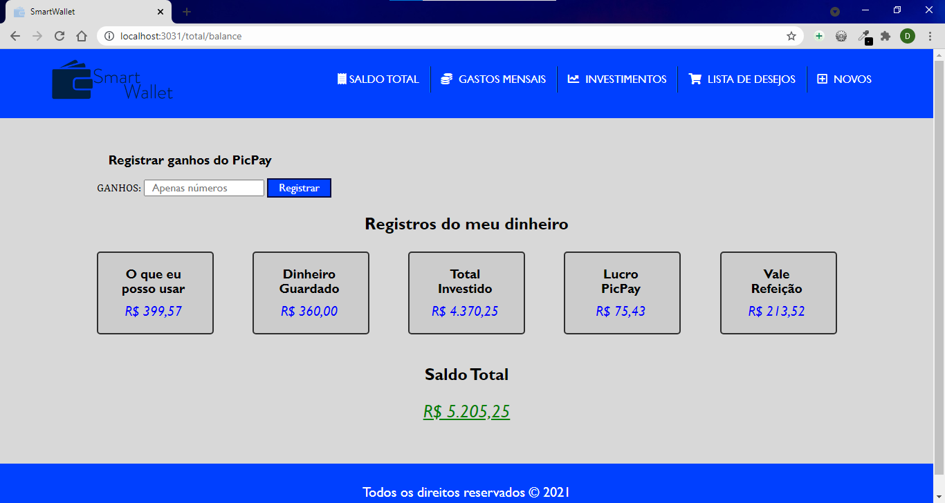 Eu usava o Excel para isso, mas decidi me arriscar e montar uma aplicação para isso. Foi ai que criei essa aplicação Smart Wallet.