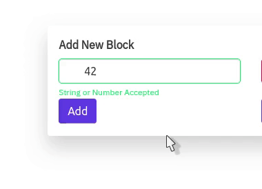 New Block Can be added by inputing a string and click add new data