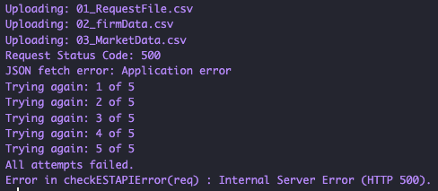 Specifically, i got the error: Error in checkESTAPIError(req) : Internal Server Error (HTTP 500).