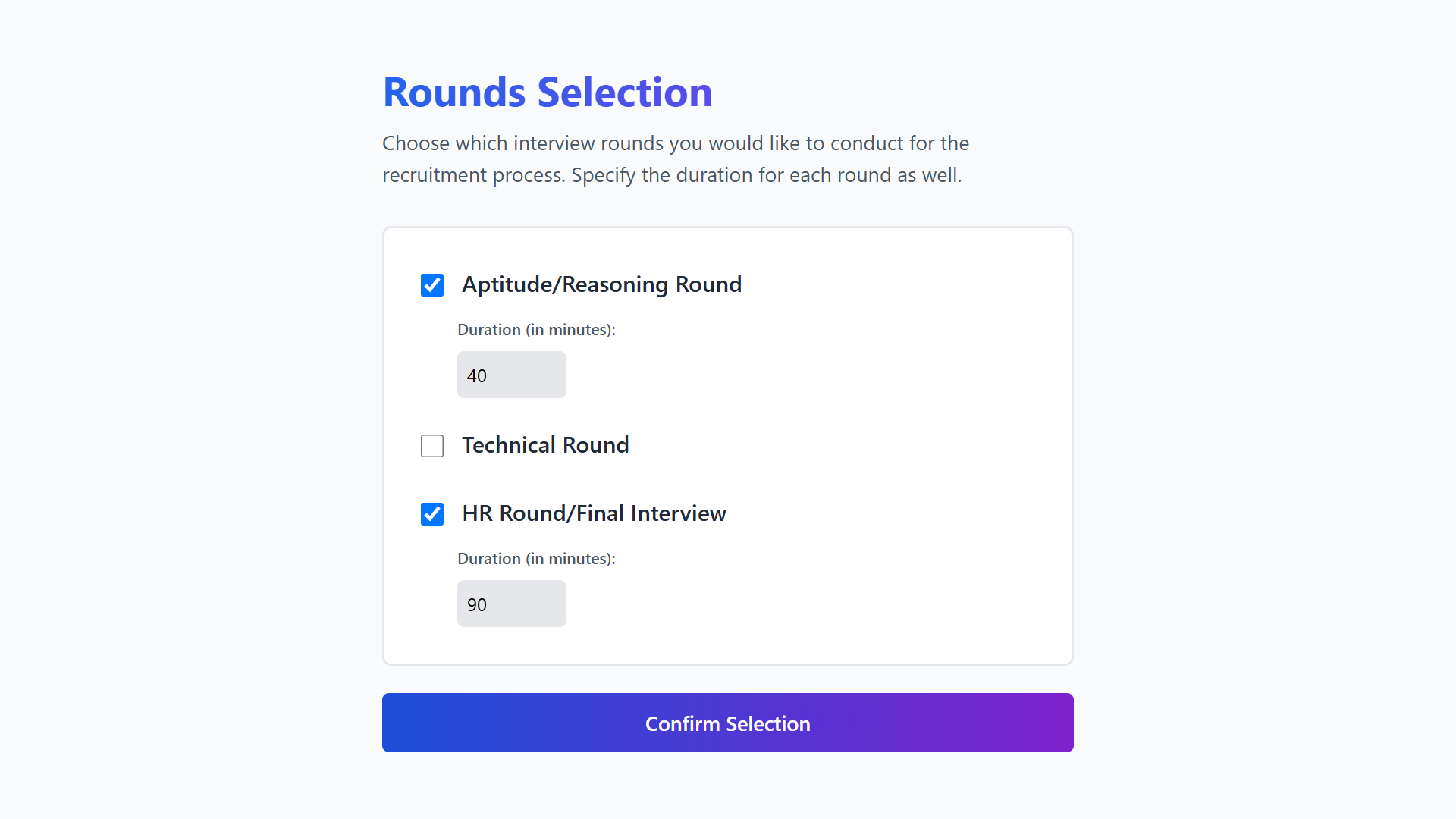 SmartRecruit introduces a multi-dimensional recruitment workflow with three comprehensive rounds: