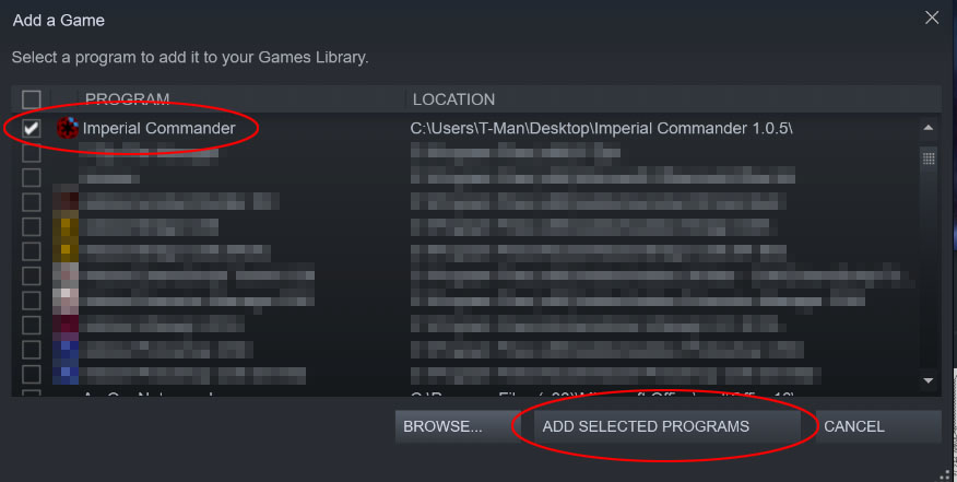 - Click Add Selected Programs. Imperial Commander should now appear in your library.