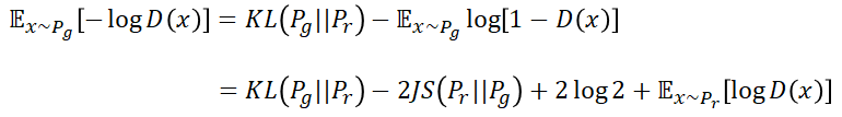 相比推到这里,也有很多人能看出这个式子本身存在的一些问题了吧。首先,这个损失函数的目的是要同时最小化生成分布和真实分布的KL散度,又要最大化两个分布的JS散度。但是我们知道这两个散度的物理意义是朝着同一个方向发展的(两者正相关)。所以这样的优化目的显然存在矛盾的地方,从而让我们的生成器训练不稳定。其次,KL散度本身的量化也存在一些问题,原因就是他不是一个对称的衡量单位。