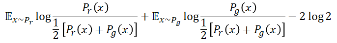 这个式子涉及到的物理意义被称为KL散度(Kullback-Leibler divergence)和JS散度(Jensen-Shannon divergence)两个相似度衡量指标。具体的数学表达式如下: