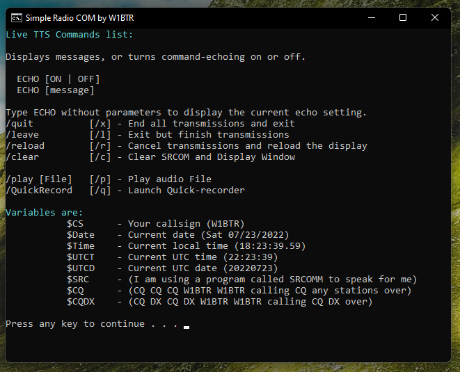 - SRCOM plugins can place .cmd files in BeforeTX, OnStartTX, and AfterTX, and they will be run accordingly.