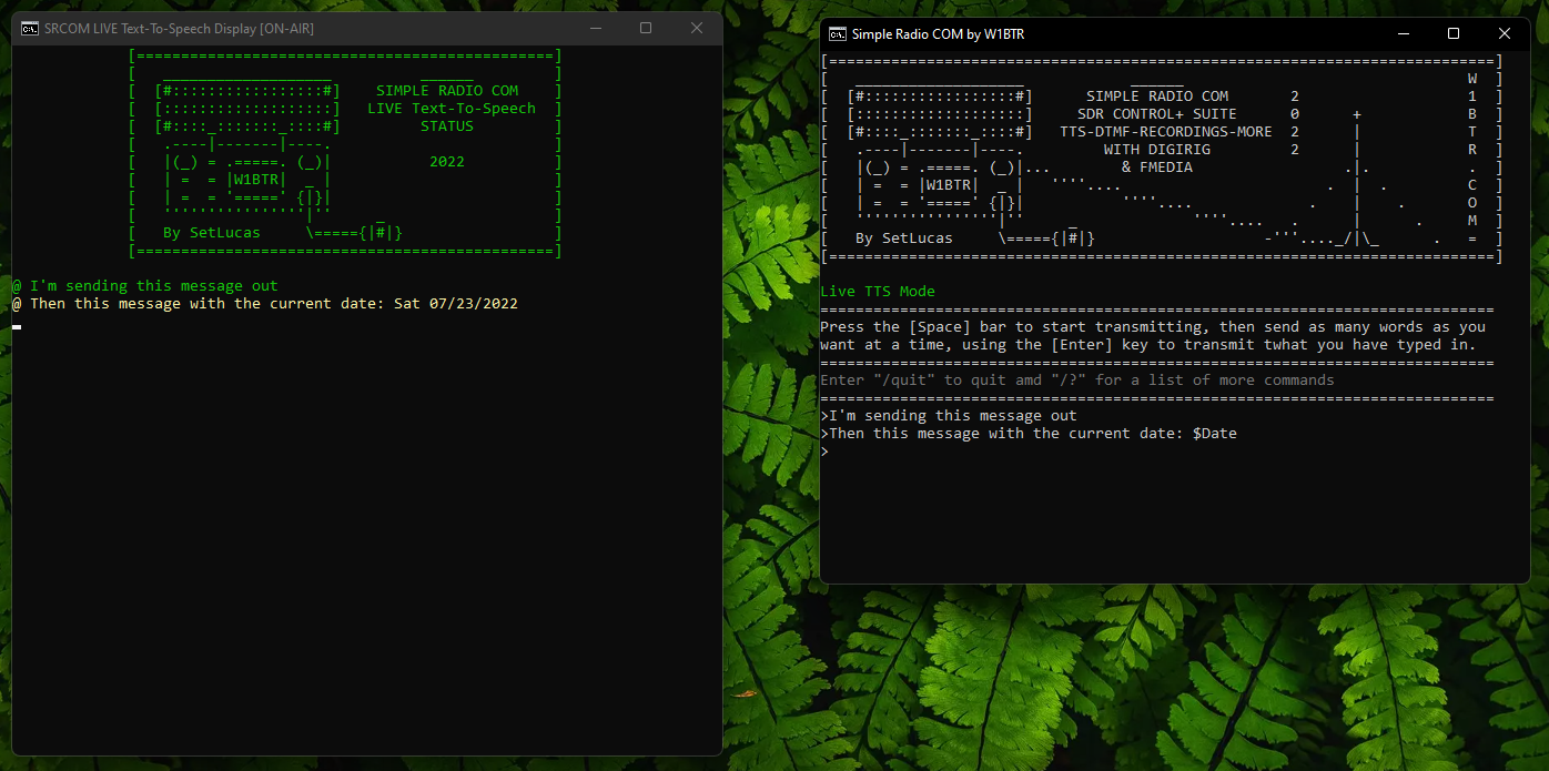 Live Text-To-Speech mode allows mute or voice impared operators to communicate with others over SSB! Use a male or female voice to talk on your radio by sending chunks of text at a time with special variables built-in!