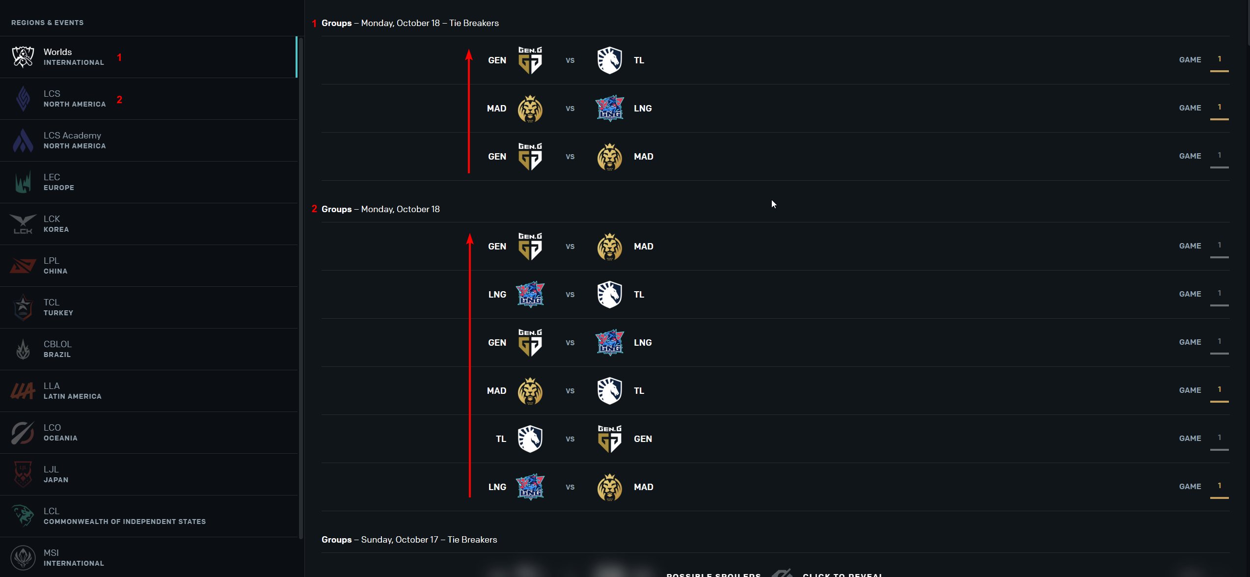 If you are curious about the watch order, currently the order is the latest event -> the latest match day -> first game of the day to the last -> the first match of the series to the last