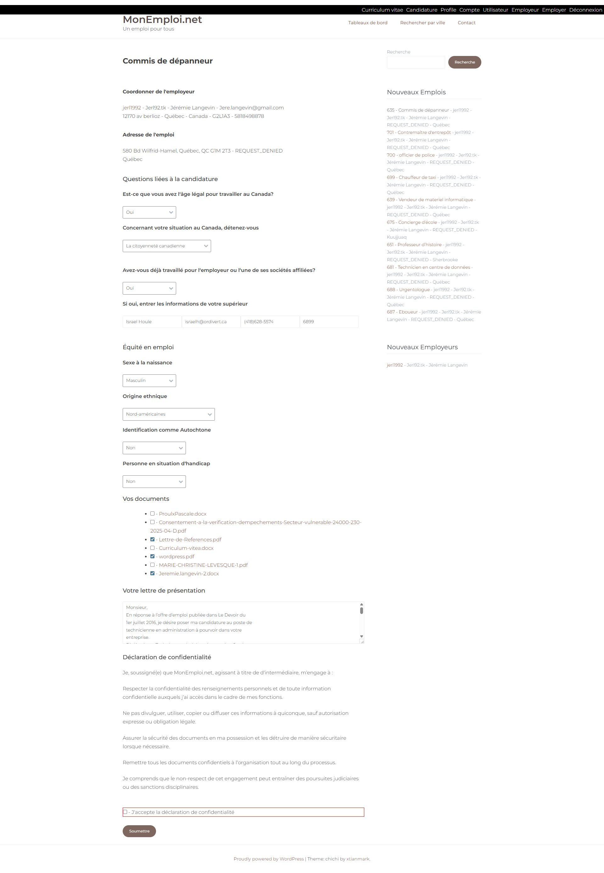 MonEmploi is a job board to make a job searching web site with user dashboard and candidacy private page.