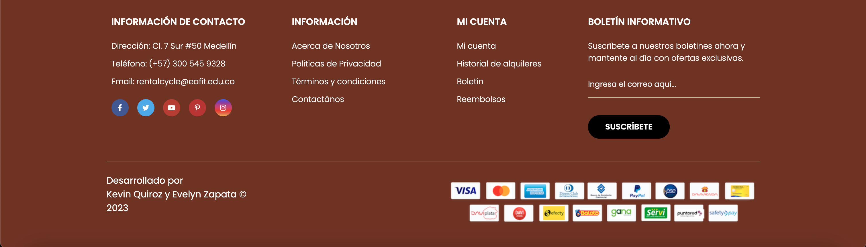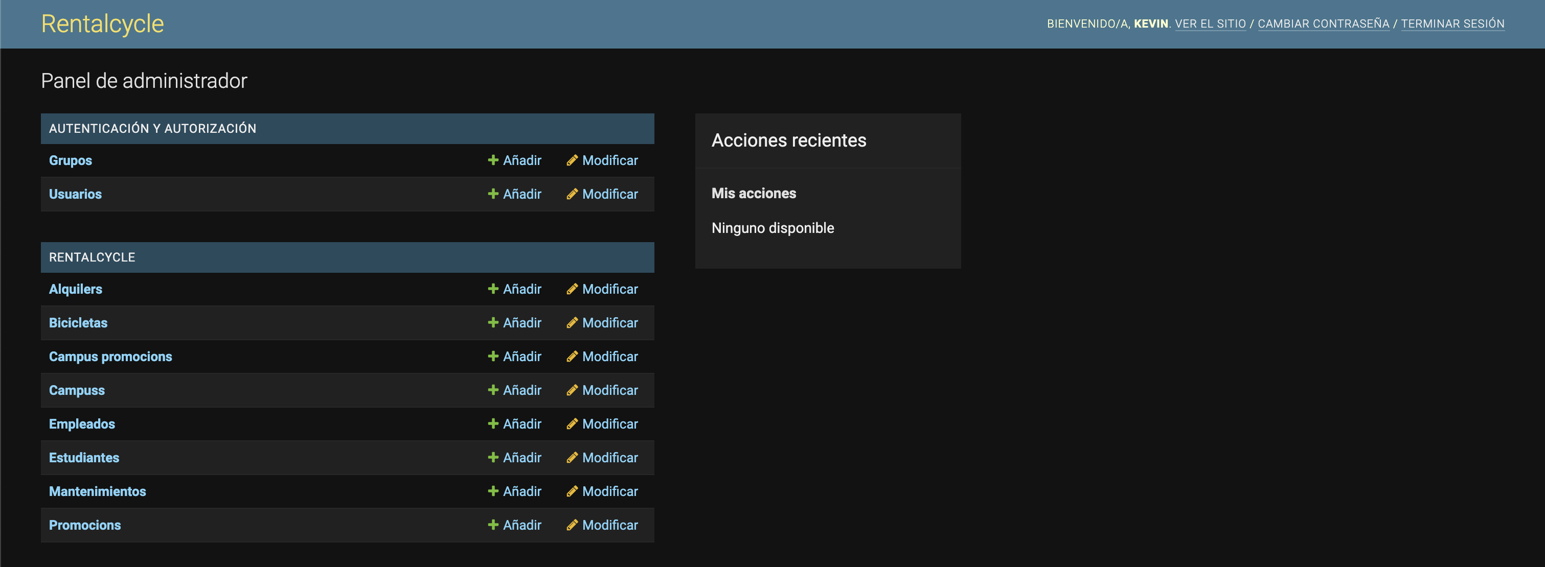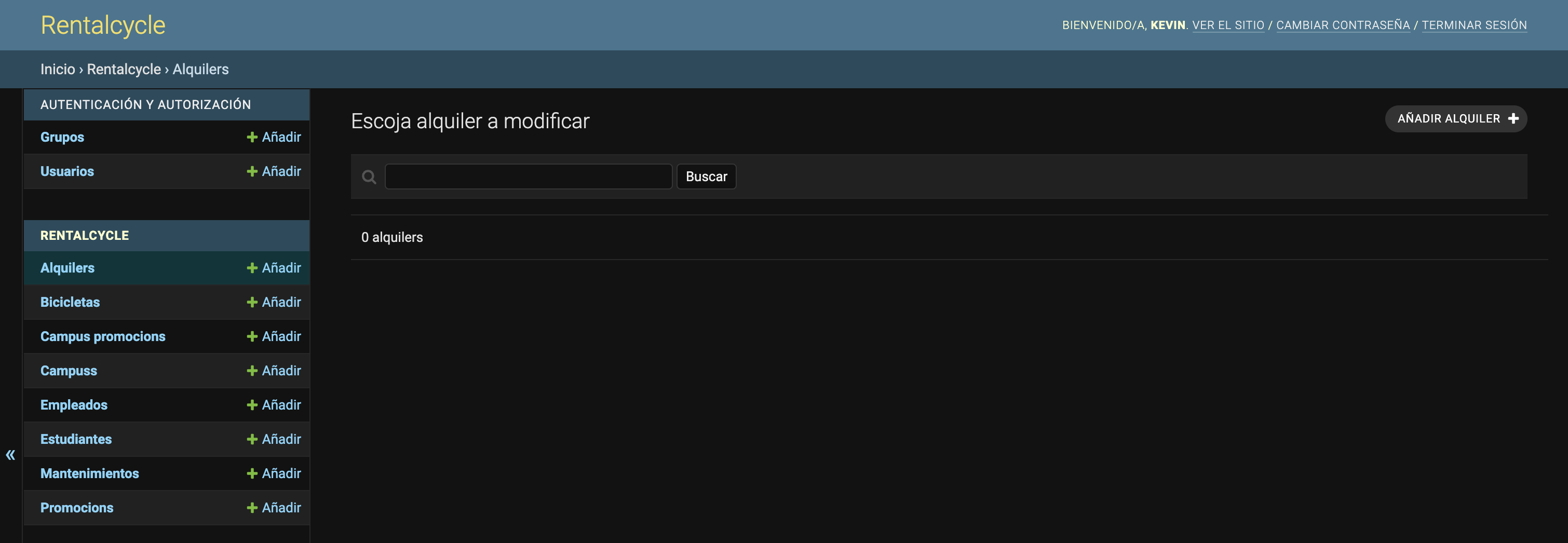 - Admin: There is an administrator section, which from there, you can add, edit or delete records from the database, which includes groups, users, rentals, bicycles, promotions, employees, students and maintenance.
