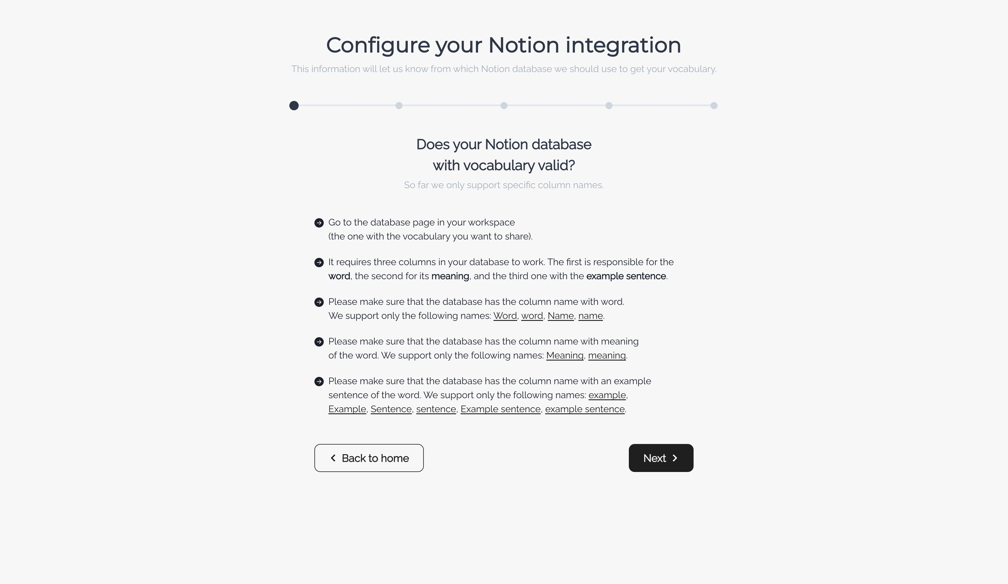 Elevate your vocabulary with our cutting-edge app! Our intuitive platform allows you to easily learn new words and phrases from your own Notion database!