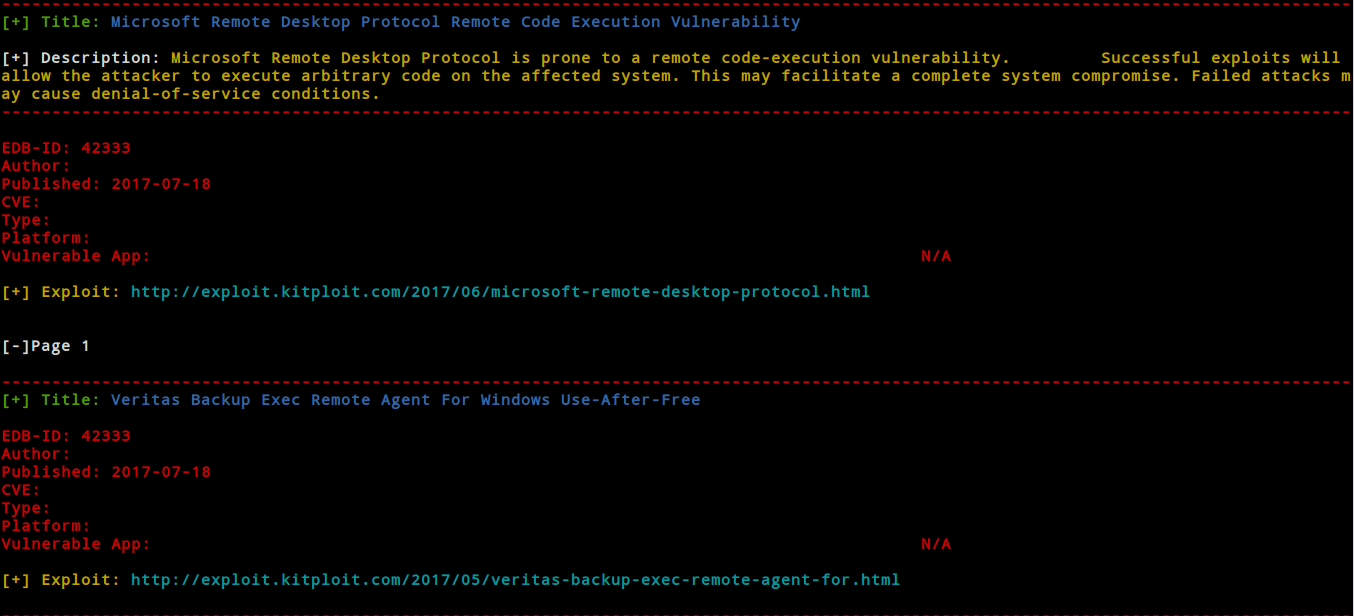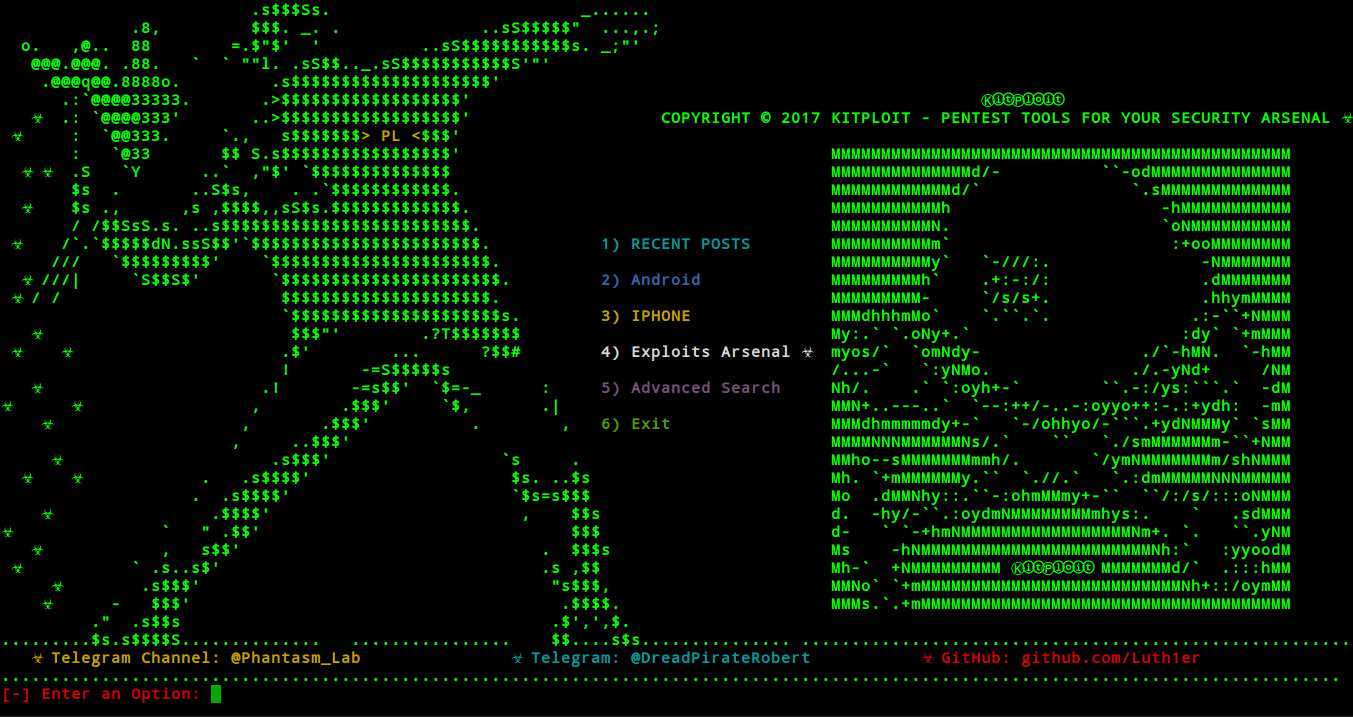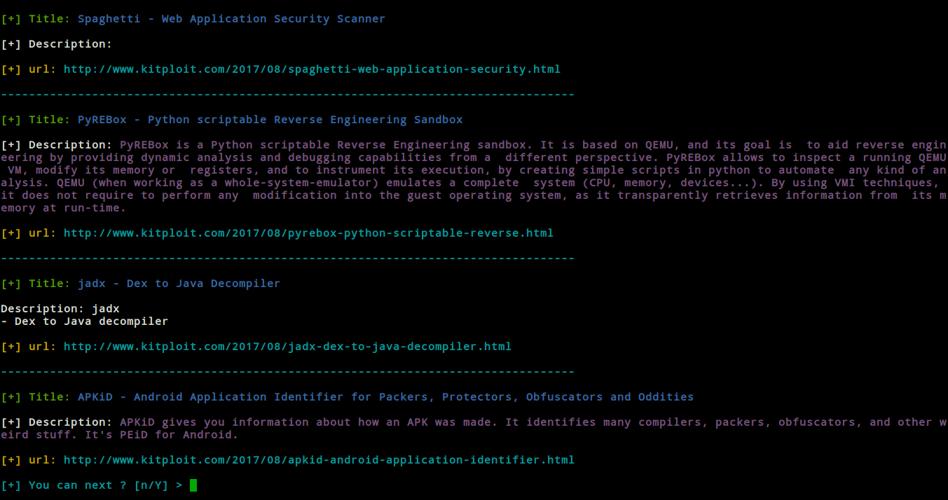 It is a tool that brings together exploits and news about security and vulnerabilities, with the intention of contributing to the open source community, developed from the site http://www.kitploit.com/ All rights reserved.