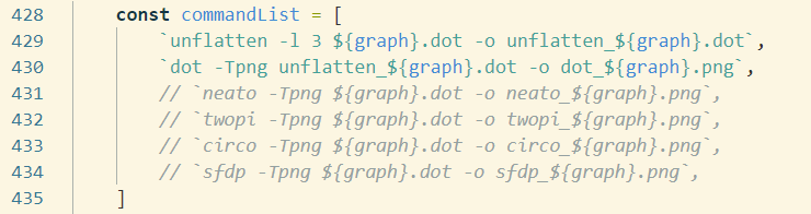 - Support running multiple commands (useful if you want to generate different layouts to know which one looks nicest, use unflatten to distribute nodes on the same rank of a wide graph to different lines, or overlay legend or watermark)