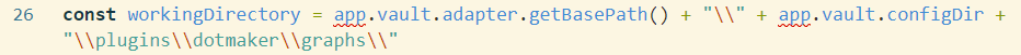 To change the output folder to a different location (default is in .obsidian/plguins/dotmaker/graphs), change the value of workingDirectory: