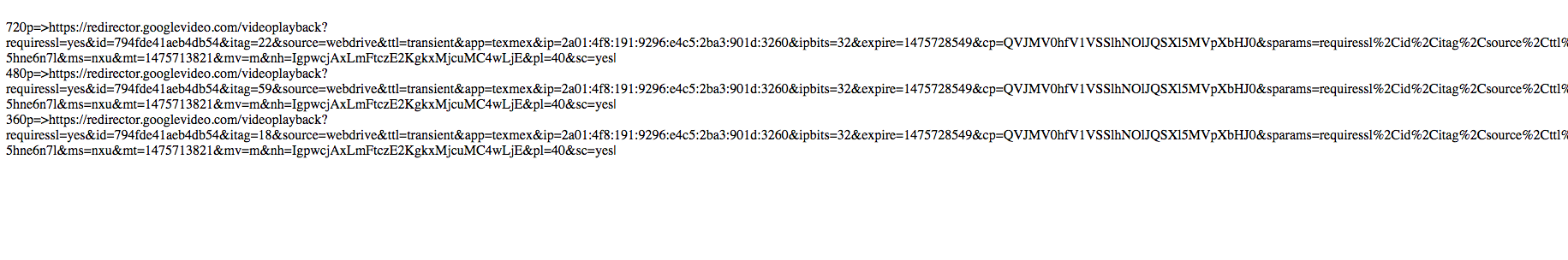 Grab google drive streaming links (redirector.googlevideo.com/videoplayback?..)
