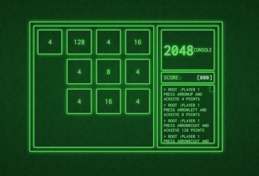 2048 CONSOLE 2048 game retro style made on pure javascript Author Miguel Angel Rodriguez - Front-End developer