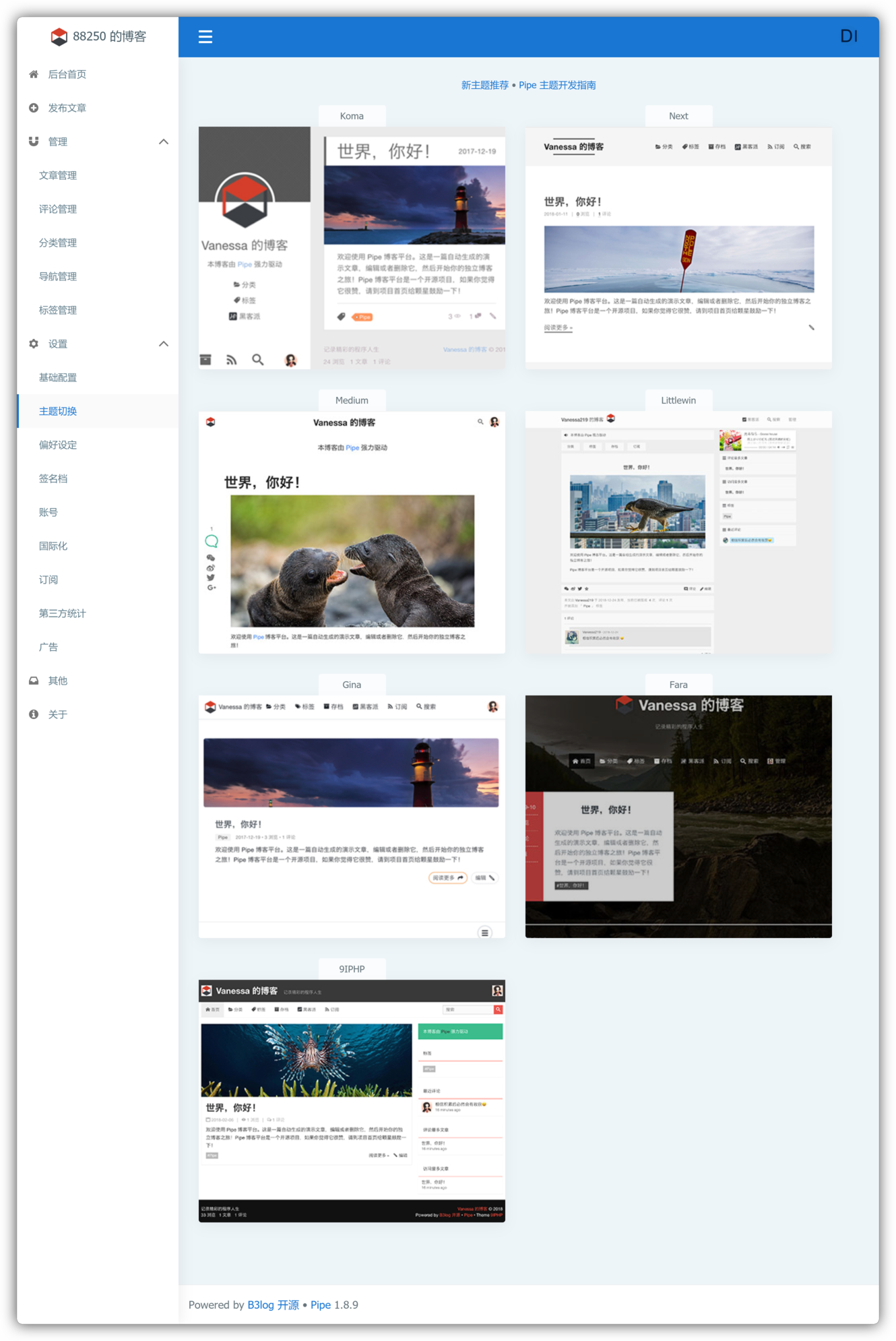 - 如果你想自己开发 Pipe 主题,请参考 https://ld246.com/article/1512550354920