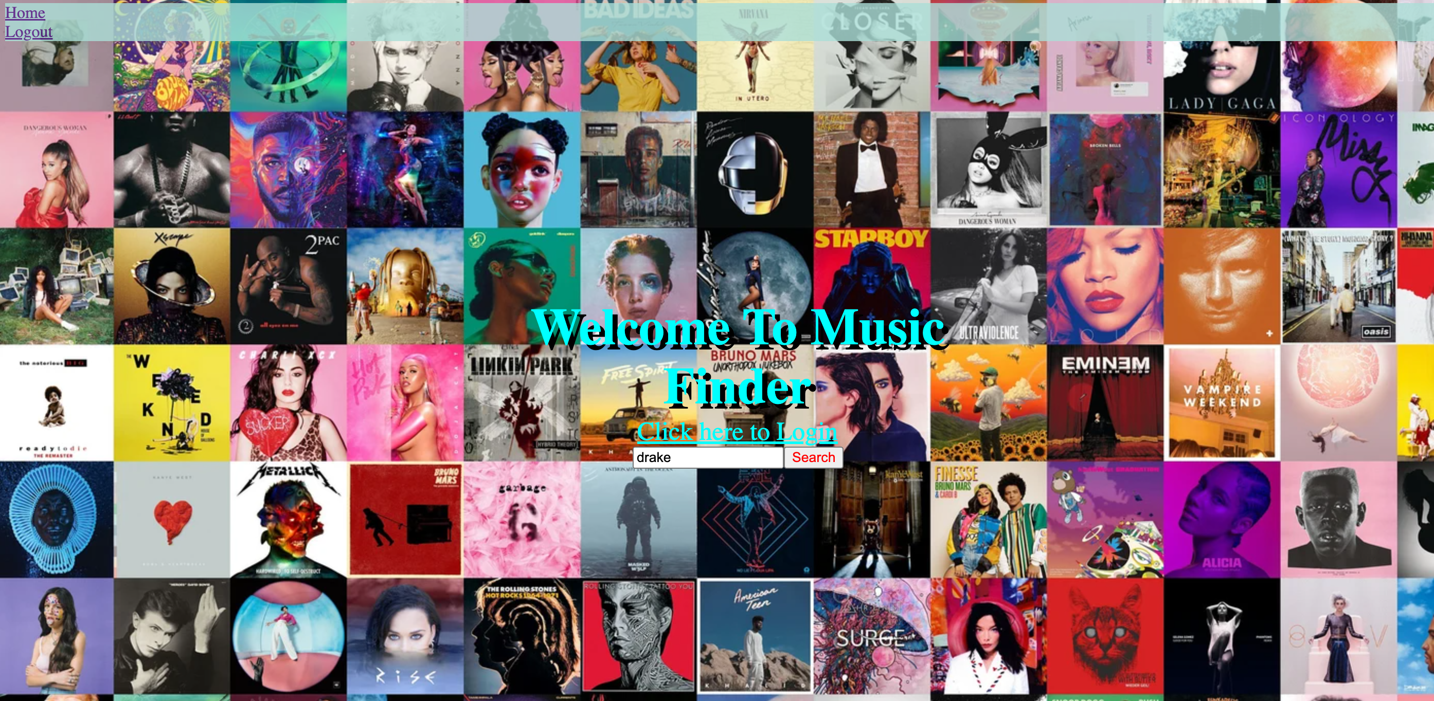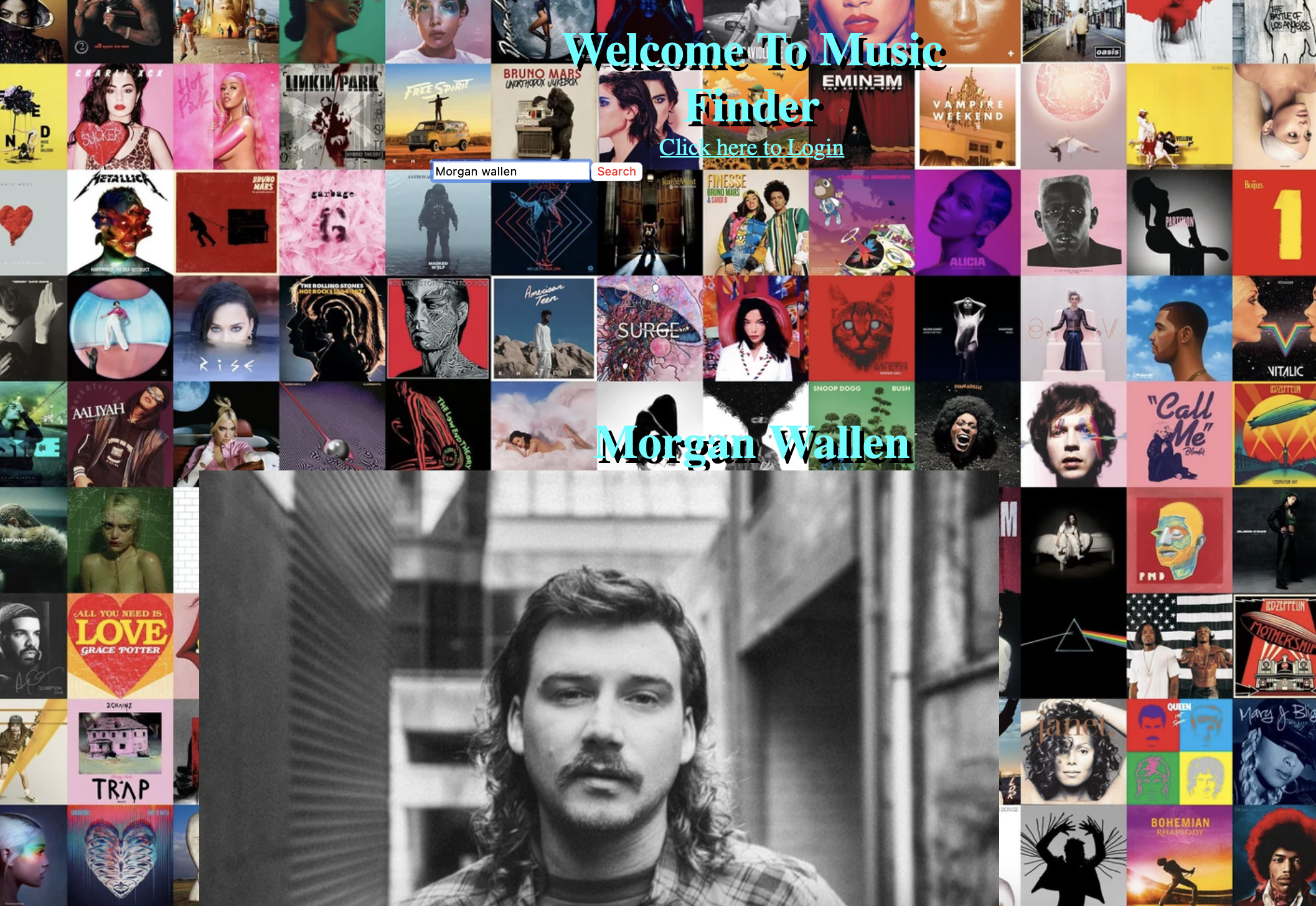 • I want the user to login/signup on there own Spotify account. • I want user to use the search function to look up any artist within Spotify API • I want user to be able to log out • I want user to play song from artist (stretch goal)