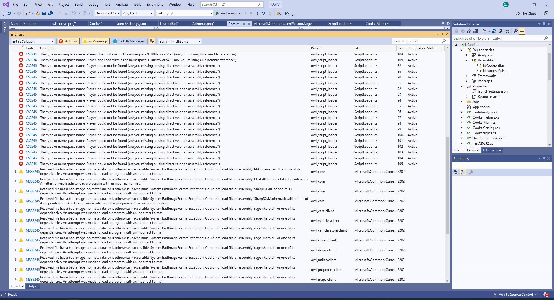 Although most of the dependencies are located within the folders, the solution shows over 70 errors for missing assembly files, including rage-sharp.dll, libCodewalker.dll and others. Some I was able to fix by adding the references to the solution via Nuget, and copy/pasting the DLL to overwrite the one included in this source.