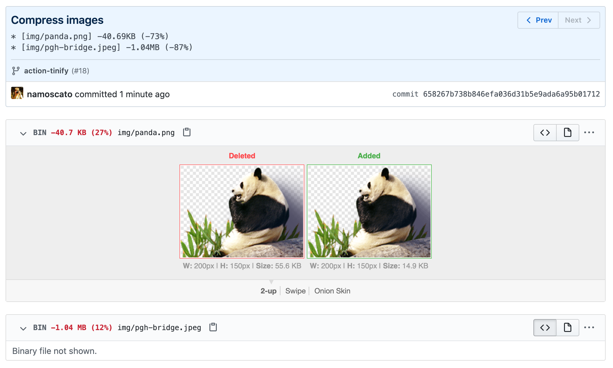 - filters PNG, JPEG, and WebP files in a commit or pull request