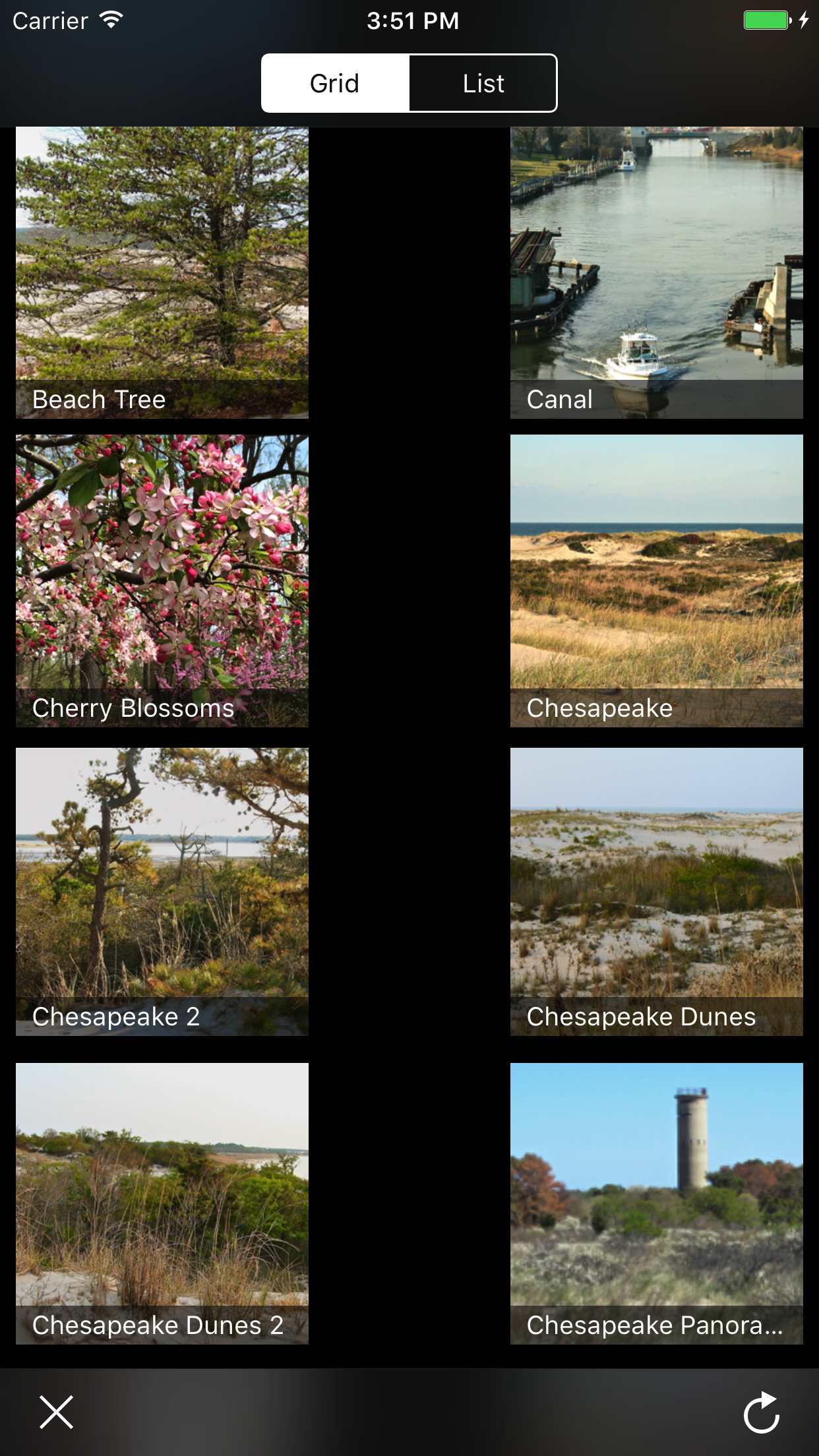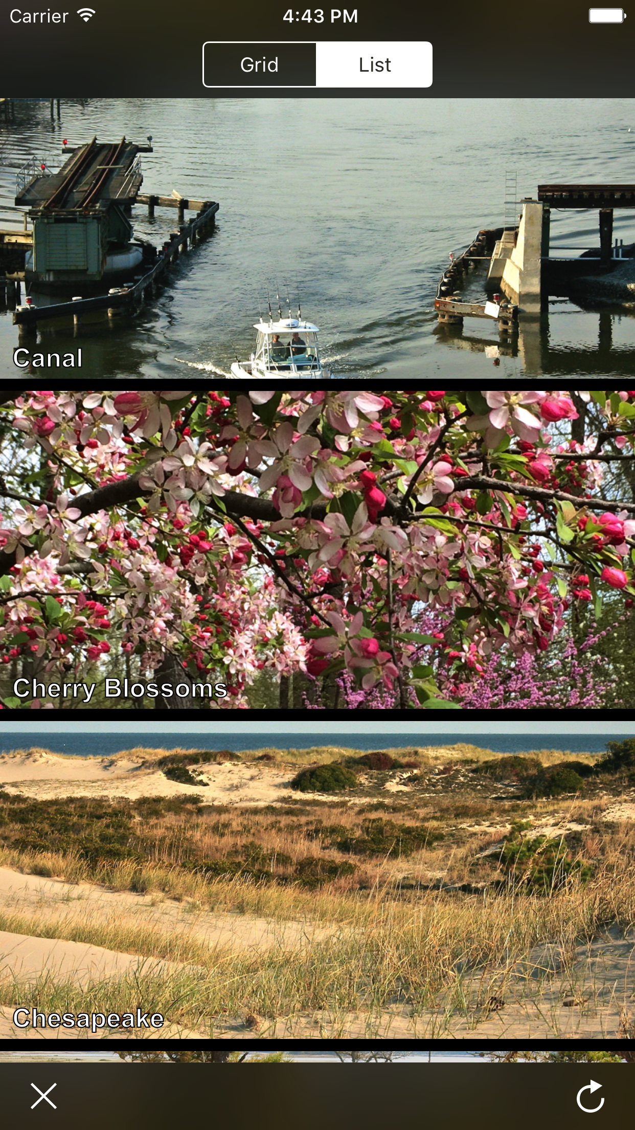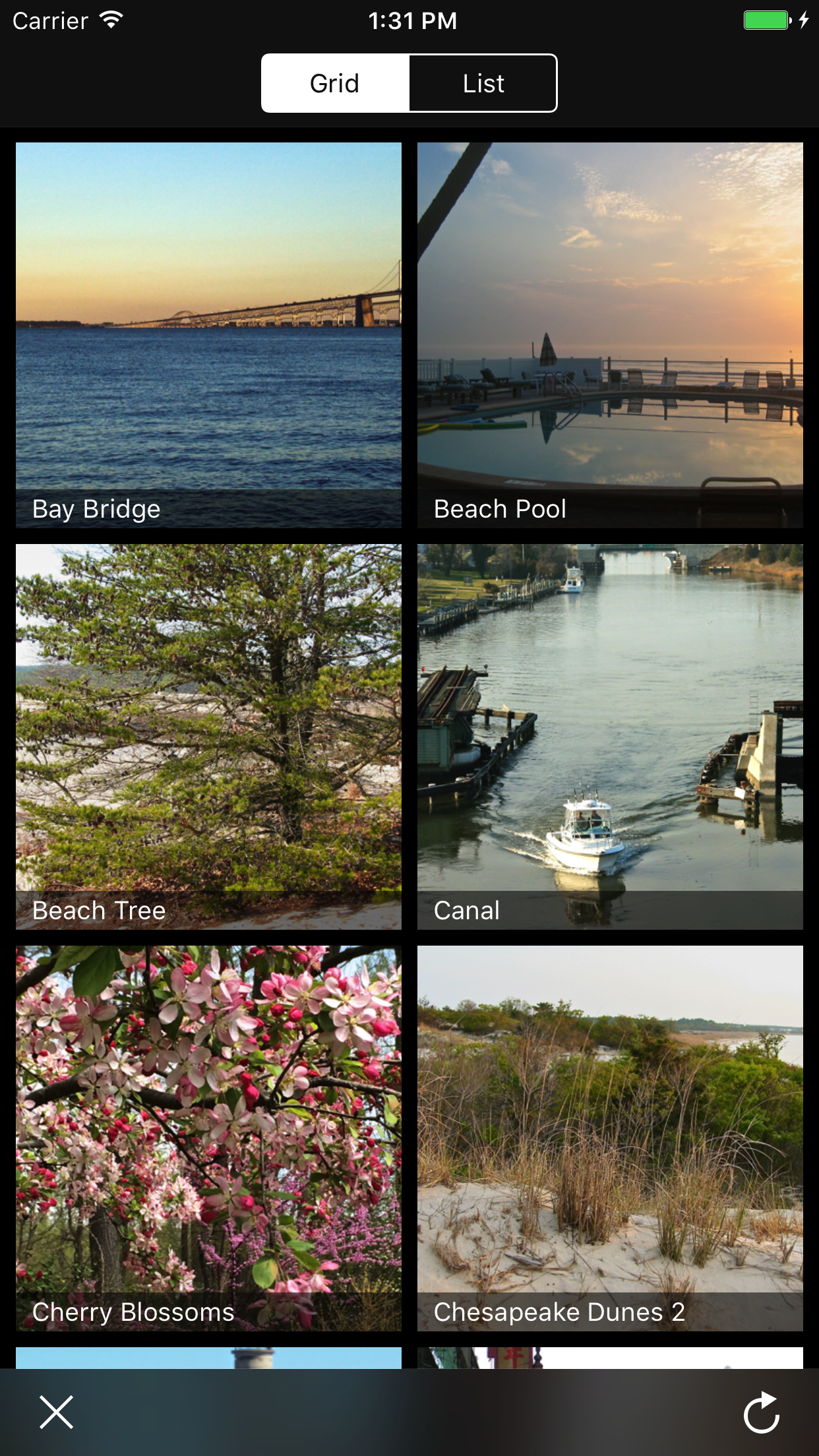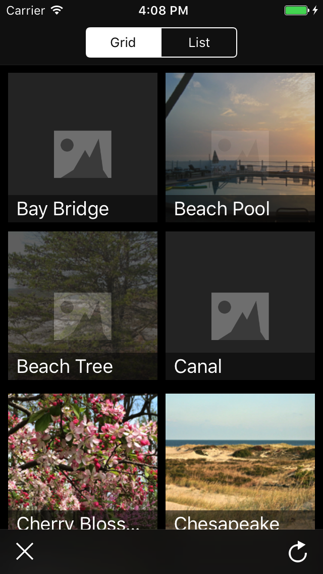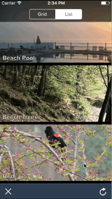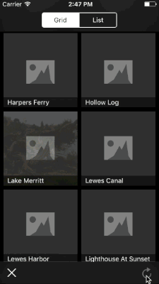 Because this list layout is just a special kind of grid layout in RHGridCollectionView, we can seamlessly transition between grid and list layouts, even in the middle of a scroll.