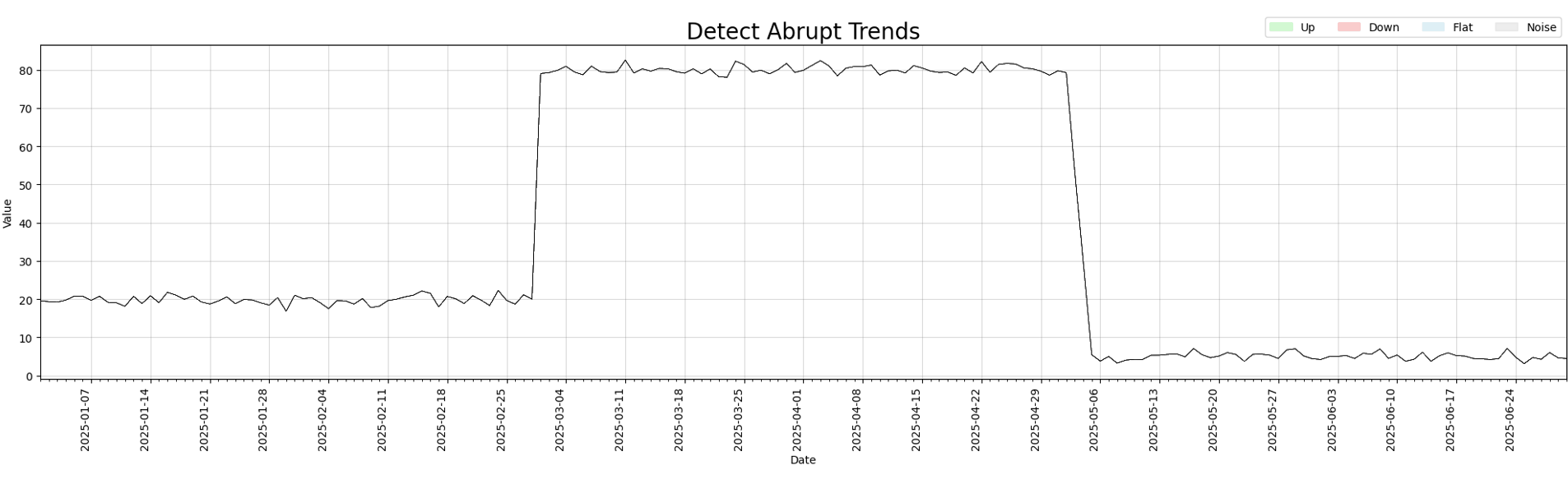The best detected trend is Down between dates 2025-05-09 - 2025-06-17