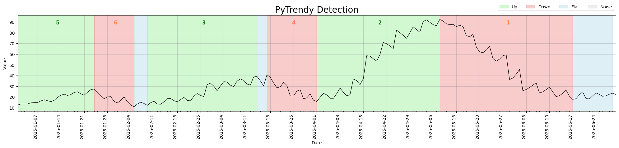 PyTrendy is a robust solution for identifying and analyzing trends in time series. Unlike other trend detection packages, it is robust to noisy & flat segments, and handles for gradual & abrupt trend cases with a high precision. It aims to be the best package for trend detection in python.