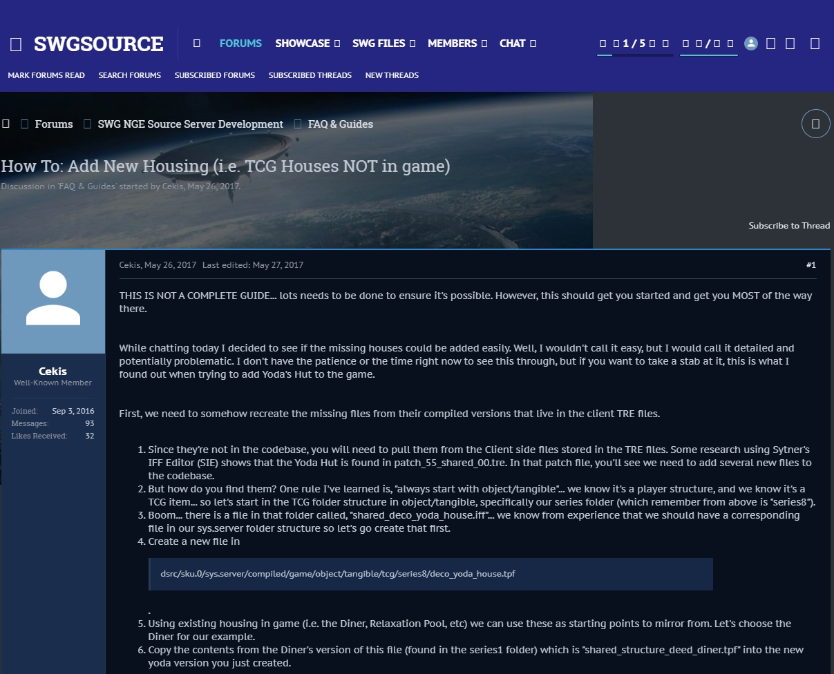 SWGSOURCE FORUMS MARK FORUMS READ SEARCH FORUMS SUBSCRIBED FORUMS SUBSCRIBED THREADS NEW THREADS SHOWCASESWG FILESMEMBERSCHAT1 / 5 /